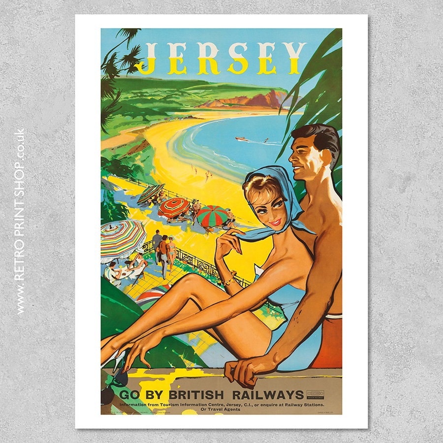 Wording: Jersey. Go by British Railways. Information from Tourism Information Centre, Jersey, C.I. or enquire at railway stations or travel agents.