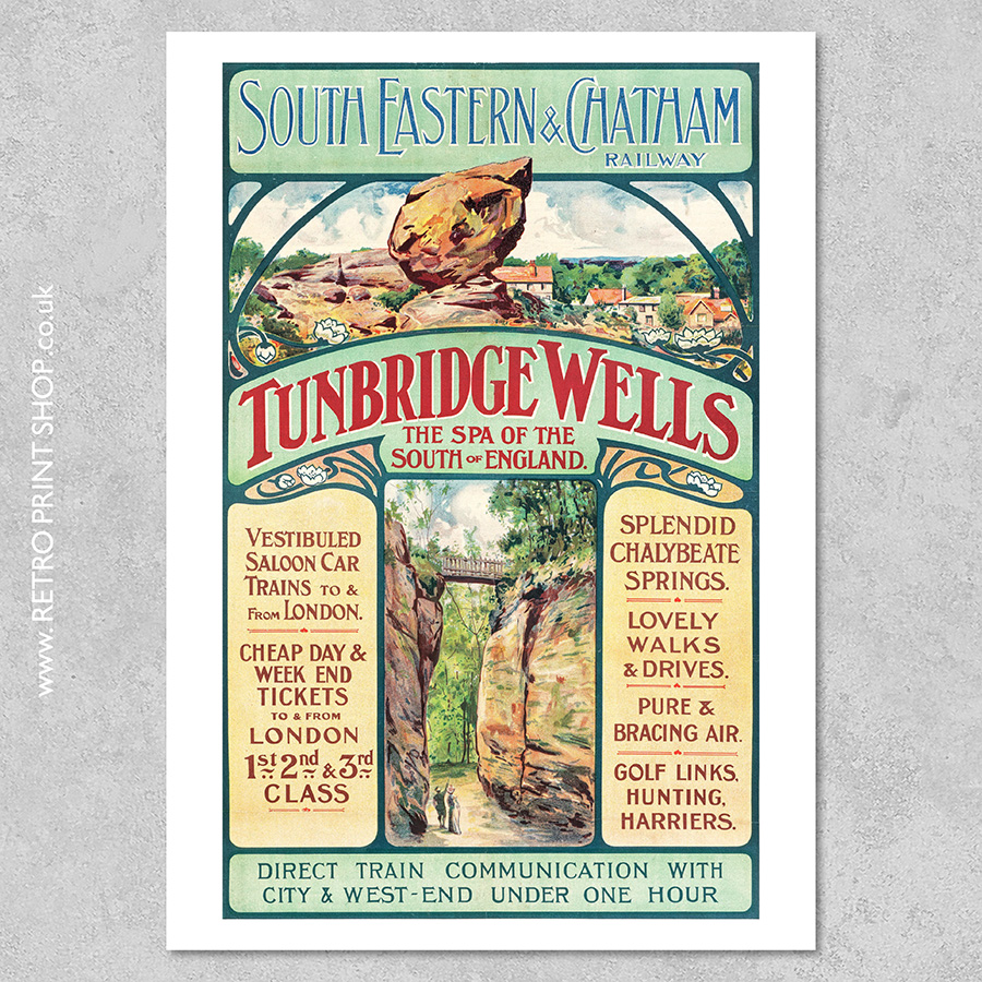 Print of South Eastern & Chatham Railway Tunbridge Wells poster.